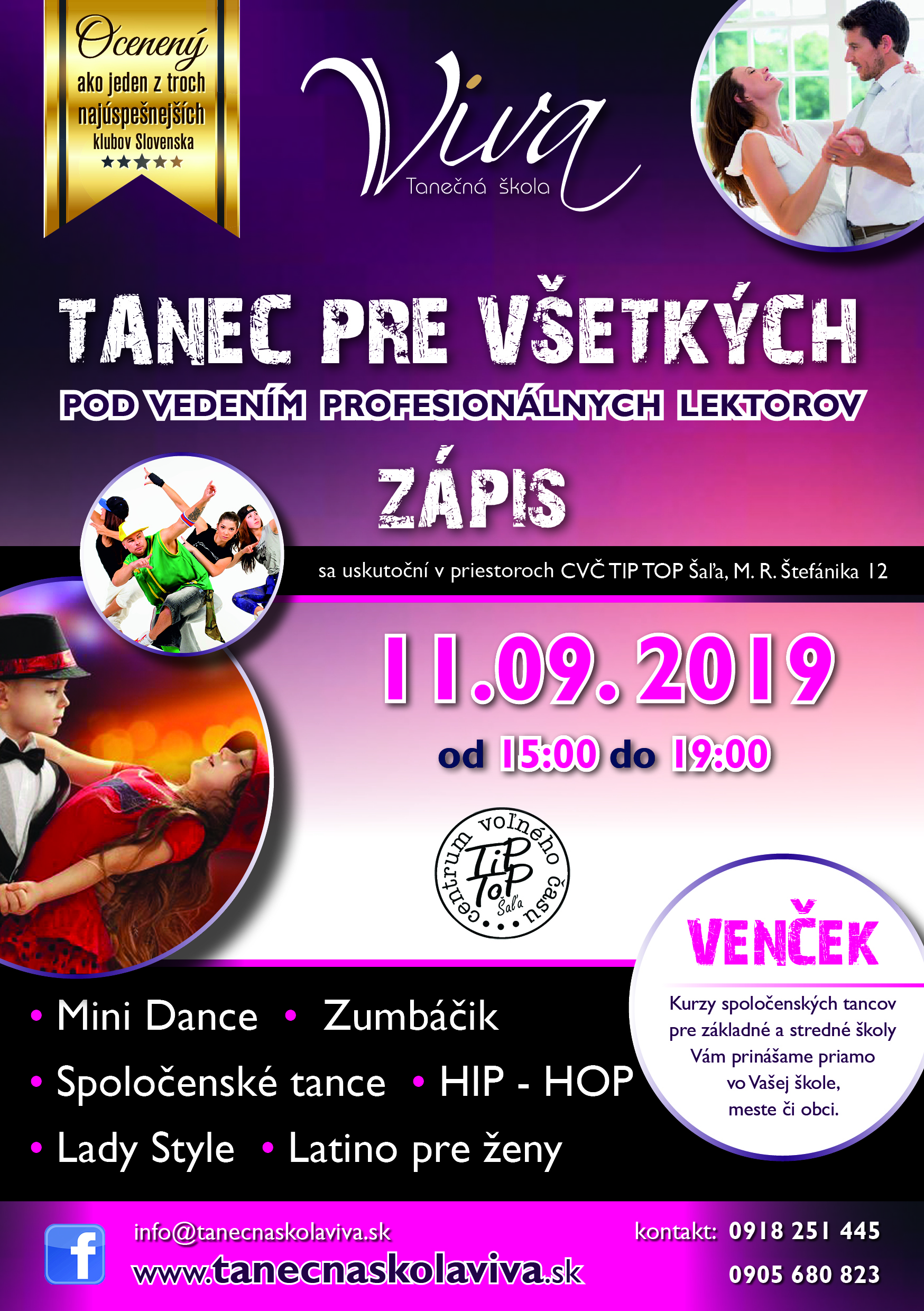 Zápis sa koná v priestoroch CVČ TIP TOP na M.R.Štefánika 12, Šaľa.