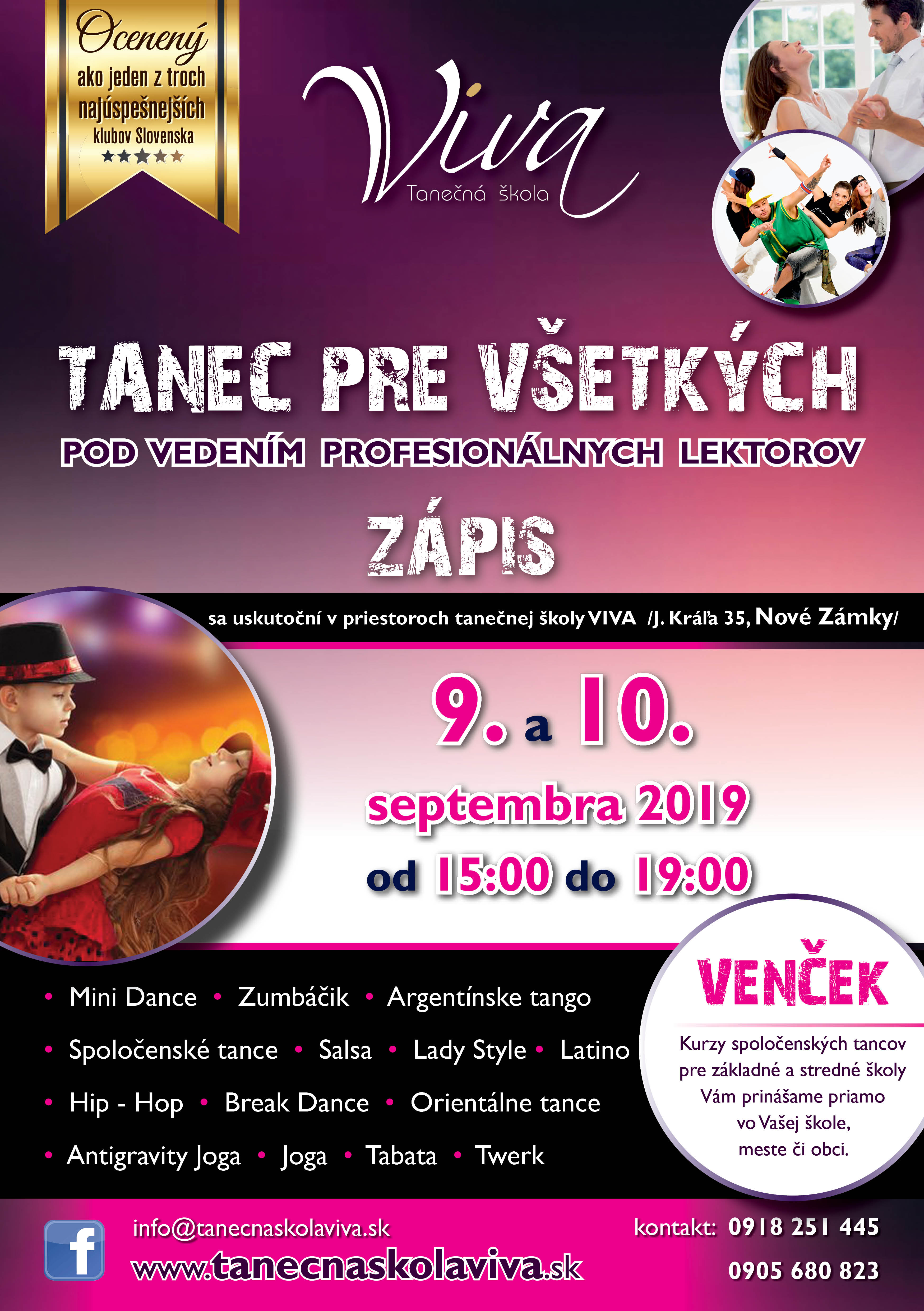 Zápis sa koná v priestoroch TŠ VIVA na J.Kráľa 35 v Nových Zámkoch.