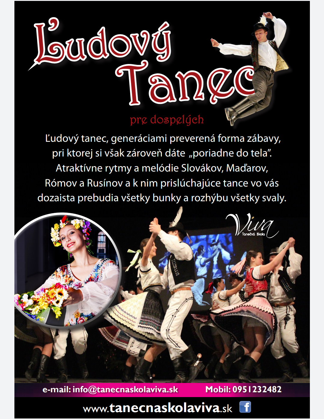 Ľudový tanec, generáciami preverená forma zábavy, pri ktorej si však zároveň dáte „„poriadne do tela”. Tanečné kurzy vám priblížia tance z rôznych regiónov a oblastí Slovenska, ktoré zvládnete aj bez predchádzajúcej tanečnej skúsenosti. Atraktívne rytmy a melódie Slovákov, Maďarov, Rómov a Rusínov a k nim prislúchajúce tance vo vás dozaista prebudia všetky bunky a rozhýbu všetky svaly