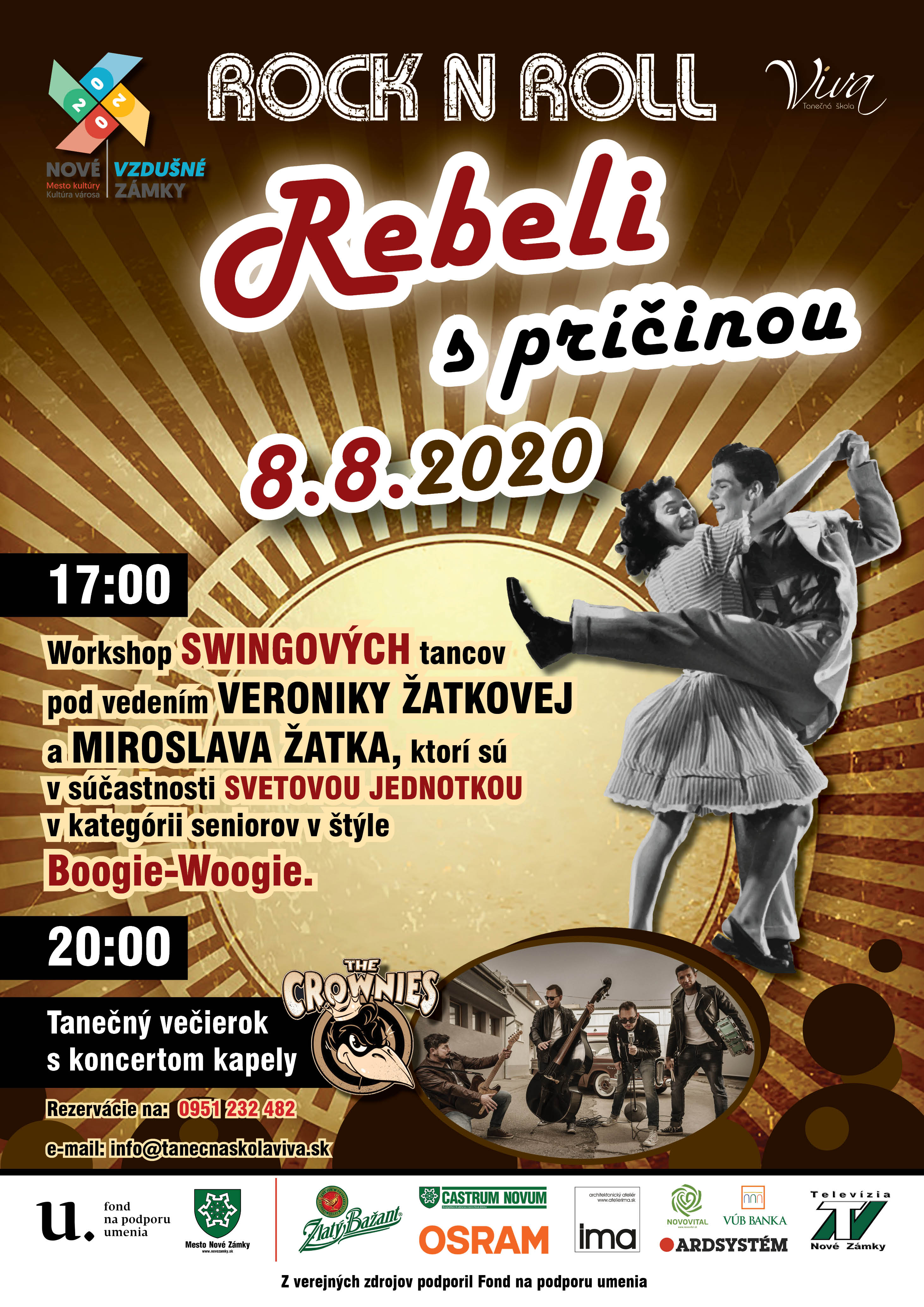 17:00 h Workshop swingových tancov pod vedením VERONIKY ŽATKOVEJ a MIROSLAVA ŽATKA, ktorí sú v súčasnosti svetovou jednotkou v kategórii seniorov v štýle Boogie-Woogie.