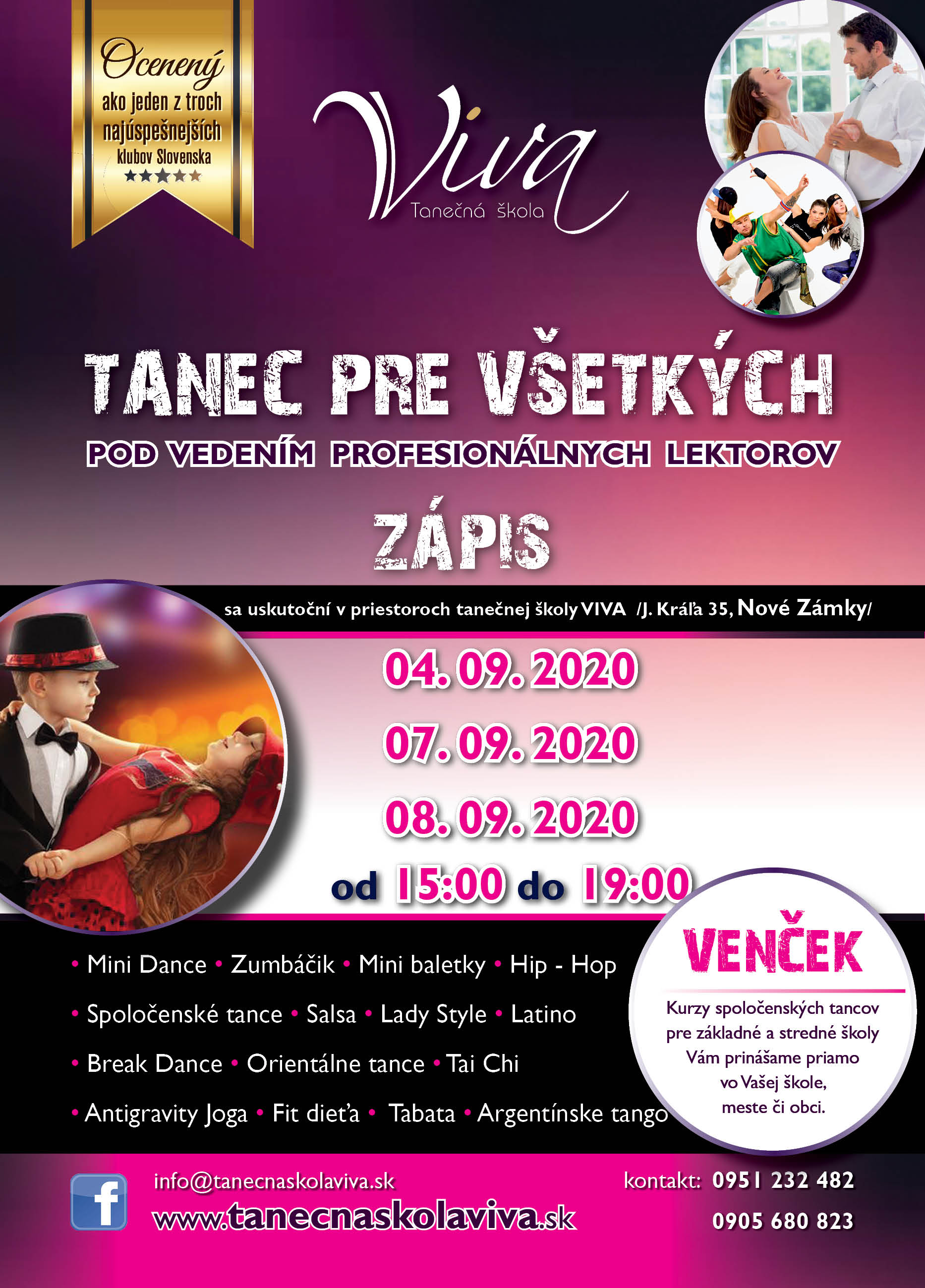 Zápis sa koná v priestoroch TŠ VIVA na J.Kráľa 35 v Nových Zámkoch.
